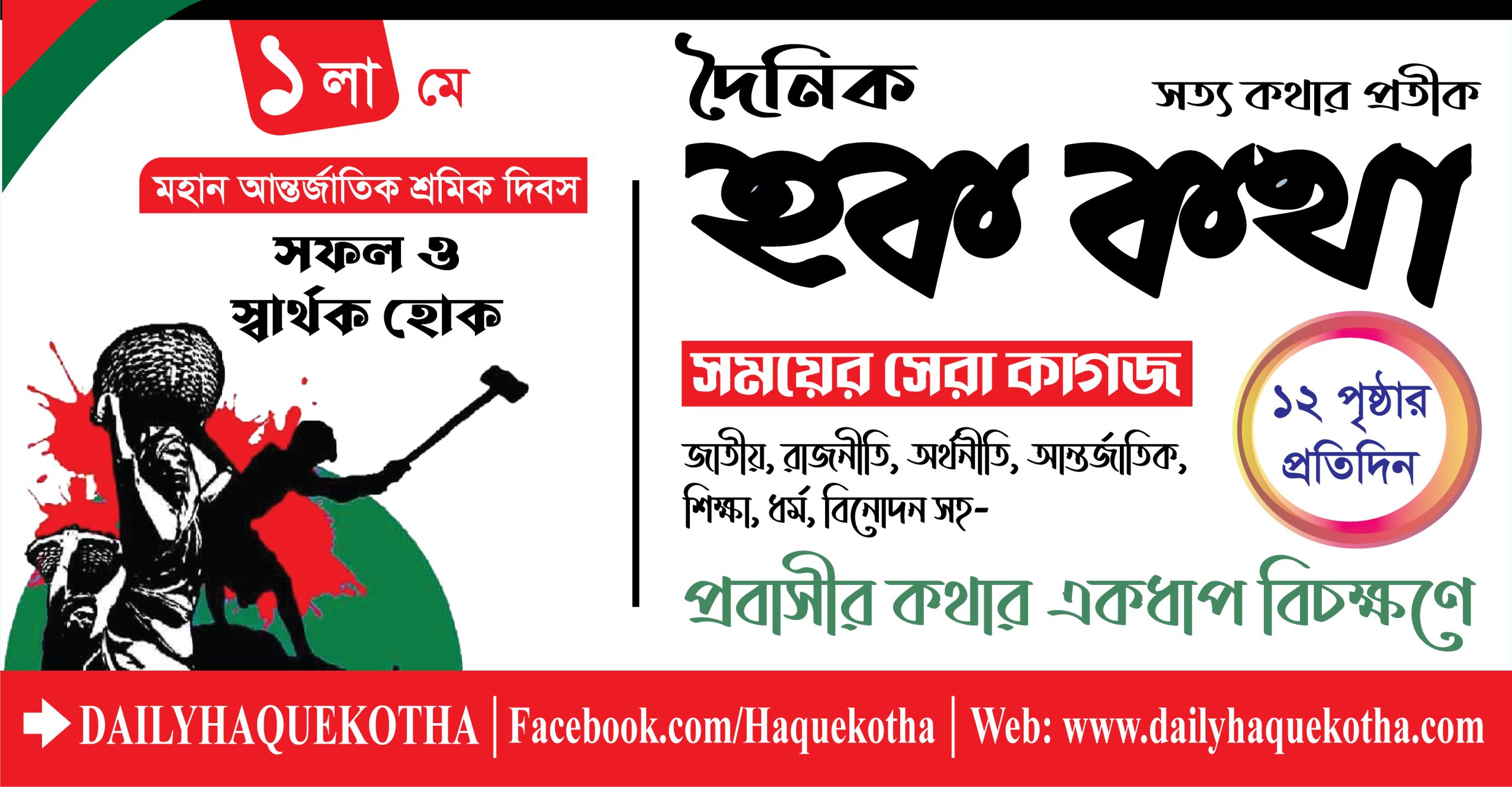 মহান মে দিবস বা আন্তর্জাতিক শ্রমিক দিবস। ক্যালেন্ডারের পাতা উল্টে প্রতি বৎসর আমাদের সামনে হাজির হয়। হাজির হয় কর্ম বিরতি নিয়ে, জাতীয় ছুটি নিয়ে। আর! আর হাজির হয় শ্রমিকের অধিকারের বার্তা নিয়ে। হাজির হয় যাদের শ্রমে ঘামে তৈরি তৈরি এই মানবসভ্যতা তাদের মানবাধিকার নিয়ে।