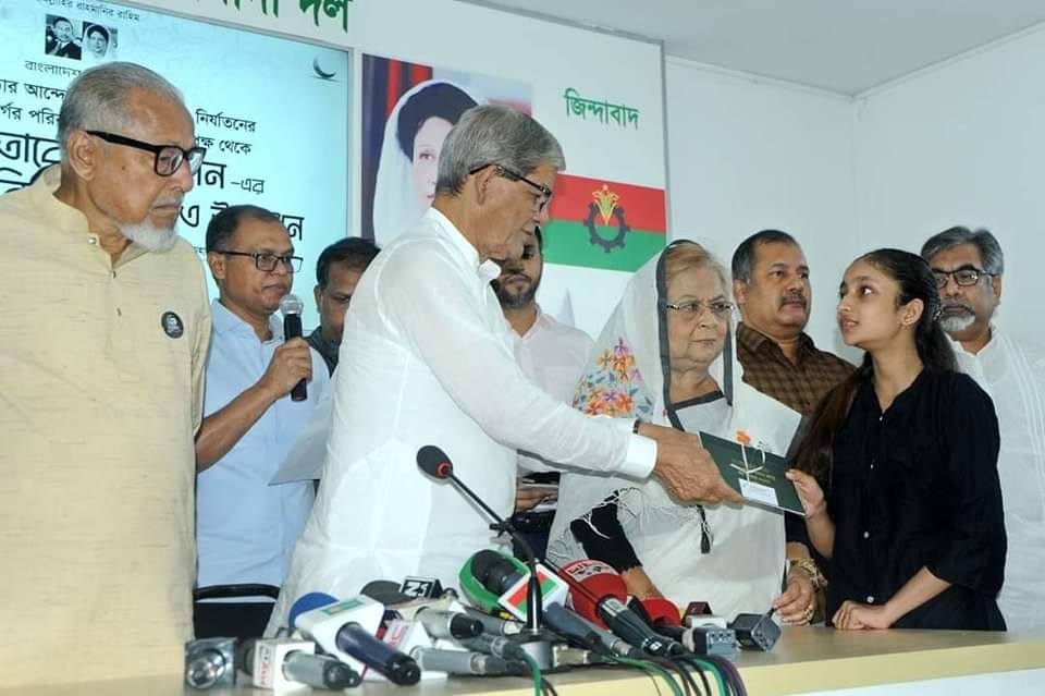 আজ বুধবার দুপুরে গুলশান বিএনপির চেয়ারপারসনের রাজনৈতিক কার্যালয়ে দলের ভারপ্রাপ্ত চেয়ারম্যান তারেক রহমানের পক্ষ থেকে “গণতন্ত্র পুনরদ্ধারের আন্দোলনে শহীদ, গুম ও নির্যাতনের শিকার ব্যক্তিবর্গের” পরিবারের মাঝে ঈদ উপহার তুলে দেন বিএনপির মহাসচিব মির্জা ফখরুল ইসলাম আলমগীর।