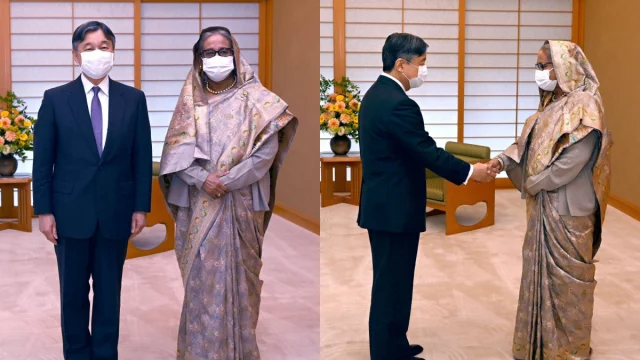 প্রধানমন্ত্রী জাপানে তার চার দিনের রাষ্ট্রীয় সফরের দ্বিতীয় দিনের সূচনায় বেশ কিছু অনুষ্ঠানে যোগ দিয়েছেন। তিনি ইম্পেরিয়াল প্যালেসে জাপানের সম্রাট নারুহিতোর সঙ্গে সাক্ষাৎ এবং জাপানের পররাষ্ট্রমন্ত্রী ইয়োশিমাসা হায়াশি, বাংলাদেশ-জাপান কমিটি ফর কমার্শিয়াল অ্যান্ড ইকোনমিক কো-অপারেশনের চেয়ারম্যান, জাইকা প্রেসিডেন্ট, জেট্রো চেয়ারম্যান, বাংলাদেশ মৈত্রী সংসদীয় লীগের সভাপতির সঙ্গে বৈঠকে যোগ দিয়েছেন।