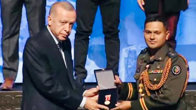 তুরস্কে ভূমিকম্প পরবর্তী উদ্ধারকার্য পরিচালনাকারী বাংলাদেশ দলকে মানবিক সহায়তার অনন্য দৃষ্টান্ত স্থাপনের স্বীকৃতিস্বরূপ তুরস্ক সরকারের পক্ষ থেকে বিশেষ সম্মাননা দেয়া হয়েছে। মঙ্গলবার তুরস্কের প্রেসিডেন্ট রিসেপ তাইপে এরদোয়ানের কাছ থেকে বাংলাদেশের পক্ষে এই সম্মাননা স্মারক গ্রহণ করেন তুরস্কে নিযুক্ত বাংলাদেশ সেনাবাহিনীর ডিফেন্স অ্যাটাশে ব্রিগেডিয়ার জেনারেল মোহাম্মদ রাশেদ ইকবাল ও উদ্ধারকারী দলের দলনেতা লেফটেন্যান্ট কর্নেল মো. রুহুল আমিন।