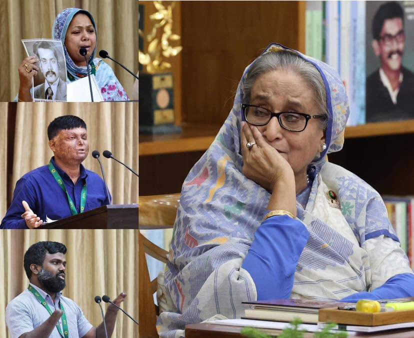 অগ্নিসন্ত্রাস ও জিয়ার আমলে নিহতদের স্বজনদের সান্ত্বনা দিয়ে শেখ হাসিনা বলেন, আমিও আপনাদের মতো একজন। আমিও একদিন শুনলাম আমার কেউ নেই। আমরা দুই বোন বিদেশে ছিলাম, এতিম হয়ে গেলাম। কী বর্বরভাবে আমার বাবা-মা, ভাই সবাইকে হারালাম।