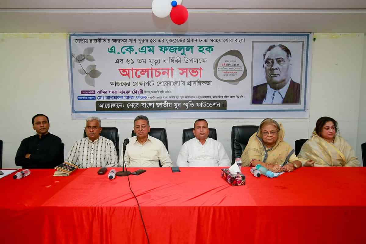 বৃহস্পতিবার জাতীয় প্রেসক্লাবে শেরে বাংলা এ. কে. এম. ফজলুল হকের ৬১তম মৃত্যু বার্ষিকী উপলক্ষে আয়োজিত এক আলোচনা সভায় তিনি এসব কথা বলেন। আলোচনা সভার আয়োজন করে শেরে বাংলা জাতীয় যুব ফাউন্ডেশন।