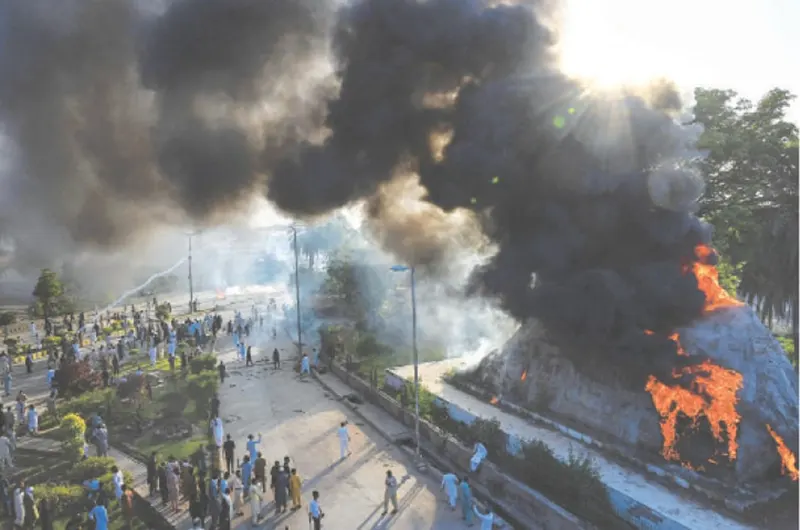 রাওয়ালপিন্ডি ও ইসলামাবাদে পুলিশ ও পিটিআই কর্মীদের মধ্যে সহিংস সংঘর্ষ দেখা গেছে। রাওয়ালপিন্ডিতে জিএইচকিউ এবং হামজা ক্যাম্পের মতো স্পর্শকাতর অবস্থানে হামলা চালিয়েছে পিটিআই। এসময় দুই পুলিশ কর্মকর্তা আহত হন। ইসলামাবাদ ও রাওয়ালপিন্ডির মধ্যেকার মেট্রো সেবা বন্ধ করে দেয়া হয়েছে। লাহোরে পিটিআই কর্মীরা লিবার্টি চকে অবস্থান নিয়ে বিক্ষোভ শুরু করে। সেখান থেকে তারা ক্যান্টনমেন্টের দিকে বিশাল মিছিল নিয়ে রওনা দেয়। সোশ্যাল মিডিয়ায় ঘোষণা দেয়া হয় যাতে সব মানুষ ক্যান্টনমেন্টে পৌঁছায় এবং এটিকে ঘিরে ফেলে। বিভিন্ন ফুটেজে দেখা যায়, পিটিআই কর্মীরা লাঠি ও পার্টির পতাকা নিয়ে এক সেনা কম্যান্ডারের বাড়ির চারদিকে অবস্থান নিয়েছে। এরপর তারা জোরপূর্বক ওই বাড়িতে প্রবেশ করে এবং ভাংচুর চালায়। ভেতরে থাকা টিভি, ফার্নিচার এবং দরজা-জানালে ভাঙতে দেখা যায় তাদের। এরপর বাড়ি ও পাশে থাকা গাছ পালায় আগুন লাগিয়ে দেয় তারা।