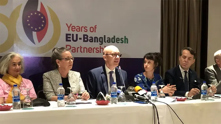 ইউরোপীয় ইউনিয়ন ডে উপলক্ষে অনুষ্ঠিত এক যৌথ সংবাদ সম্মেলনে ইউরোপের ২৭ রাষ্ট্রের ওই জোটের তরফে জানানো হয়েছে, বাংলাদেশের আসন্ন দ্বাদশ জাতীয় সংসদ নির্বাচন অংশগ্রহণমূলক হলেই কেবলমাত্র পর্যবেক্ষক পাঠাবে ইইউ। মাঠ পর্যায়ে নির্বাচন-পূর্ব পরিস্থিতি কেমন? বিশেষত তা অংশগ্রহণমূলক হওয়ার পরিবেশ আছে কিনা? তা মূল্যায়নে একটি স্বাধীন বিশেষজ্ঞ দল পাঠাচ্ছে ইইউ। জুলাই মাসে তারা বাংলাদেশ সফর করবে। তারা ফিরে তাদের মতামতসহ ইইউ’র হাই রিপ্রেজেন্টিটিভ জোসেফ বোরেলের কাছে মূল্যায়ন রিপোর্ট জমা দেবে। সেই রিপোর্টের ভিত্তিতেই বাংলাদেশে নির্বাচনে ইইউ পর্যবেক্ষক পাঠাবে কিনা? সে সিদ্ধান্ত নেবেন জোসেফ বোরেল। মঙ্গলবার সন্ধ্যায় রাজধানীর একটি অভিজাত হোটেলে অনুষ্ঠিত ওই সংবাদ সম্মেলনে ইইউ রাষ্ট্রদূত চার্লস হোয়াইটলি ছাড়াও ইতালি, নেদারল্যান্ড, ফ্রান্স, জার্মানি, ডেনমার্ক, সুইডেন ও স্পেনের রাষ্ট্রদূতরা উপস্থিত ছিলেন।
