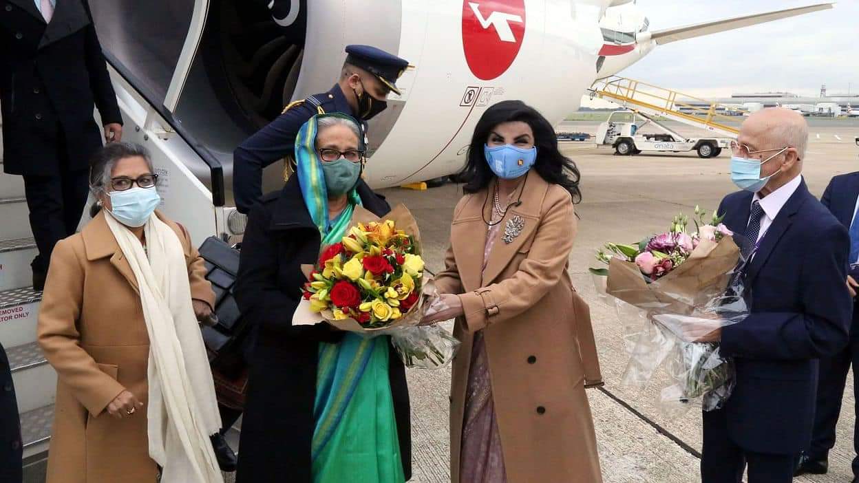 যুক্তরাজ্যে বাংলাদেশের হাইকমিশনার সাইদা মুনা তাসনিম বিমানবন্দরে প্রধানমন্ত্রীকে অভ্যর্থনা জানান। এসময় ব্রিটিশ সরকারের পক্ষে রাষ্ট্রদূত এলিসন ব্ল্যাকবার্ন উপস্থিত ছিলেন।