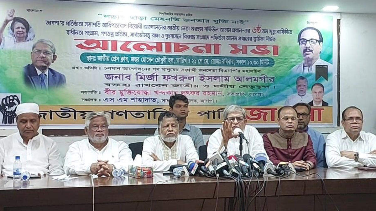 রোববার (২১ মে) দুপুরে জাতীয় প্রেস ক্লাবে এক আলোচনা সভায় এসব কথা বলেন মির্জা ফখরুল। জাতীয় গণতান্ত্রিক পার্টি-জাগপার প্রতিষ্ঠাতা শফিউল আলম প্রধানের ষষ্ঠ মৃত্যুবার্ষিকী উপলক্ষ্যে এ আলোচনা সভার আয়োজন করে জাগপার একাংশ।