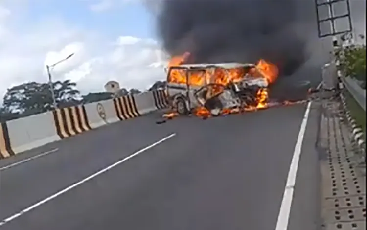 ভেতরেই নারী-শিশুসহ ৭ জন মারা গেছে। ধারনা করা হচ্ছে গাড়িটি মহাসড়কের রেলিংয়ে ধাক্কা লেগে আগুন ধরে যায়।’