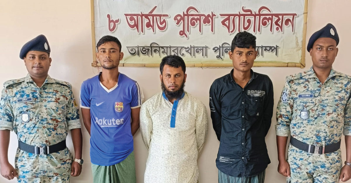 গ্রেফতার তিনজন হলেন—টেকনাফের ২০ নম্বর রোহিঙ্গা ক্যাম্পের এইচ-১ ব্লকের ফয়েজ উল্লাহর ছেলে এনাম উল্লাহ (২১), টেকনাফ সদর ইউনিয়নের নতুন পল্লান পাড়ার মৃত নুর মোহাম্মদের ছেলে কলিম উল্লাহ (৩৫), একই ইউনিয়নের দক্ষিণ লম্বরি এলাকার সাইফুল ইসলামের ছেলে তারিকুল ইসলাম (১৯)। এর মধ্যে কলিম উল্লাহর বিরুদ্ধে হত্যা, অস্ত্র সহ চারটি মামলা রয়েছে।