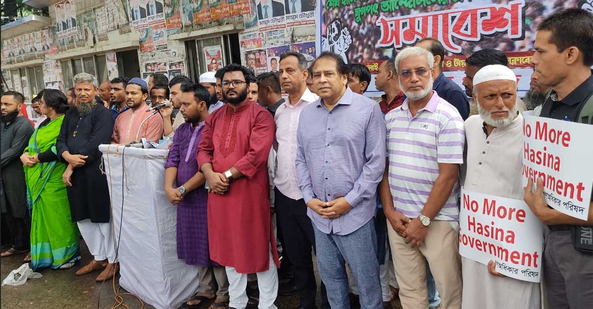 শুক্রবার (২৮ জুলাই) বিকেলে জাতীয় প্রেসক্লাবে যুগপৎ আন্দোলনের কর্মসূচি হিসেবে আয়োজিত সমাবেশে এই দাবি জানানো হয়।