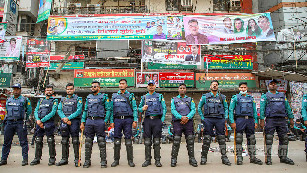সর্তক অবস্থানে আইনশৃঙ্খলা বাহিনী: বিএনপির মহাসমাবেশ ঘিরে সর্তক অবস্থানে রয়েছে আইনশৃঙ্খলা বাহিনী। গতকাল বিকাল থেকে নয়াপল্টনে হঠাৎ করেই আইনশৃঙ্খলা বাহিনীর উপস্থিতি বাড়ানো হয়। সাদা পোশাকেও আইনশৃঙ্খলা বাহিনীর বিভিন্ন সংস্থার সদস্যদেরও দায়িত্ব পালন করতে দেখা যায়। কেন্দ্রীয় কার্যালয়ের পাশে প্রস্তুত রাখা হয় ১টি এপিসি এবং ২টি জলকামান। রাতে এ রিপোর্ট লেখা পর্যন্ত নয়াপল্টন এলাকায় পুলিশের কড়া প্রহরা দেখা যায়।
