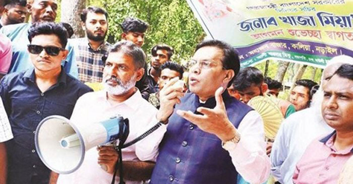 অভিযোগ উঠেছে, সরকারি কর্মচারীদের জন্য প্রণীত আচরণ বিধিমালা লঙ্ঘন করে ভোটের মাঠে নেমেছেন মুক্তিযুদ্ধবিষয়ক মন্ত্রণালয়ের সিনিয়র সচিব খাজা মিয়া। অথচ তার চাকরির মেয়াদ আছে আরও এক বছর। গণপ্রতিনিধিত্ব অধ্যাদেশ অনুযায়ী কোনো সরকারি কর্মকর্তার অবসর গ্রহণের পর তিন বছর পার হওয়ার আগে নির্বাচনে প্রার্থী হওয়ার সুযোগ নেই। অথচ আগামী নির্বাচনে নিজ এলাকা নড়াইল-১ আসনে আওয়ামী লীগের মনোনয়ন চাওয়ার ঘোষণা দিয়ে শুরু করেছেন নির্বাচনী প্রচার।