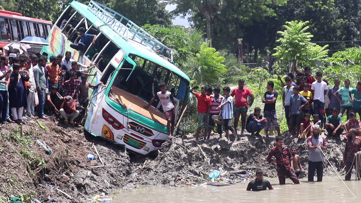 এই যাত্রী আরও বলেন, আমরা কিছু বুঝে ওঠার আগেই বাসটি সড়ক থেকে পুকুরে পড়ে ডুবে যায়। বাসটি পুরোপুরি অন্ধকার হয়ে যায়। এর মধ্যে একটু ফরসা দেখে সেদিকে এগিয়ে যেতেই একটি জানালা পাই। পরে সেই জানালা দিয়ে বাইরে বেরিয়ে আসি।