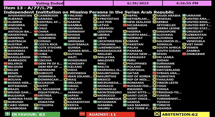 সিরিয়ায় নিখোঁজ ব্যক্তির পরিবারের সদস্যরা জানতে চান তাদের আত্মীয় বা প্রিয়জন কোথায় আছেন। তাদেরকে সহায়তা করার জন্য জাতিসংঘ একটি মেকানিজম তৈরি করার চেষ্টা করে। বৃহস্পতিবার এই প্রস্তাব অনুমোদিত হয়। এর ফলে সিরিয়ার যুদ্ধে গুম হওয়া ওইসব ব্যক্তির পরিণতি সম্পর্কে জানতে একটি নিরপেক্ষ বডি গঠন করছে জাতিসংঘ।