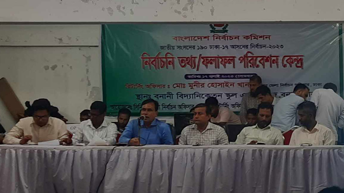 ঢাকা-১৭ আসনের উপ-নির্বাচনের ফল ঘোষণা চলছে। ফল ঘোষণা করছেন ঢাকা-১৭ আসনের নির্বাচনের রিটার্নিং কর্মকর্তা মনির হোসাইন খান।