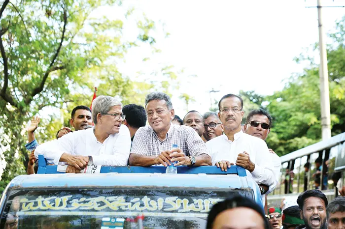 ঢাকার গণমিছিলে দলের স্থায়ী কমিটির সদস্য গয়েশ্বর চন্দ্র রায় বলেন, একটি কথাই বলা যায়, শেখ হাসিনা ক্ষমতায় থাকতে পারবে না। তার অধীনে আমরা কোনো নির্বাচনে যাবো না। আমাদের অধিকার গণতান্ত্রিক অধিকার আমাদের উদ্ধার করে প্রতিষ্ঠা করতে হবে। ভারত যদি আবার ১৪ সালের মতো শেখ হাসিনাকে ক্ষমতায় রাখতে চায় চ্যালেঞ্জ এদেশের ১৮ কোটি জনগণ এবার ছাড়বে না।