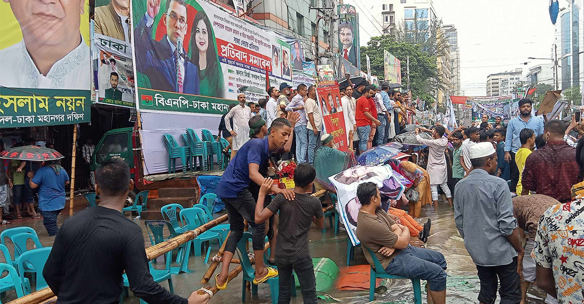 নয়াপল্টনে সমাবেশ শুরু, হাঁটু পানিতে নেতাকর্মীরা
