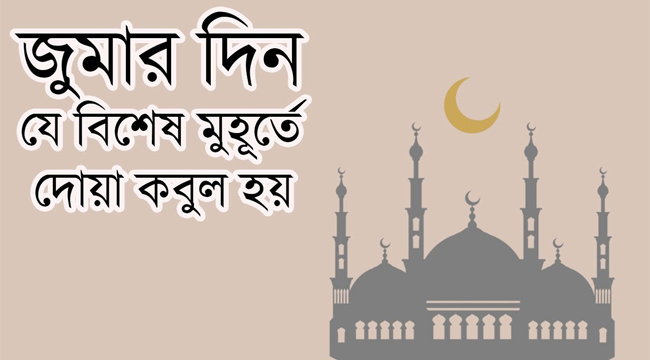 তিনি আরো বলেন, ‘নিশ্চয়ই জুমার দিন এমন একটি মুহূর্ত রয়েছে, সে সময়টিতে একজন মুসলমান যে কল্যাণের দোয়া করবে, অবশ্যই আল্লাহ তাকে তা দান করবেন।’ (মুসলিম)