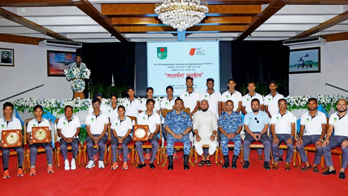 আজ (বৃহস্পতিবার) বিমান বাহিনীর ফ্যালকন হলে আয়োজিত সংবর্ধনায় তাদের শুভেচ্ছা জানান বিমান বাহিনী প্রধান ও হকি ফেডারেশনের সভাপতি এয়ার চিফ মার্শাল শেখ আবদুল হান্নান। এ সময় ফেডারেশনের অন্যান্য কর্মকর্তারাও উপস্থিত ছিলেন। ফুলেল শুভেচ্ছার পাশাপাশি খেলোয়াড়দের আর্থিকভাবেও পুরস্কৃত করেন পারফরম্যান্সের জন্য।