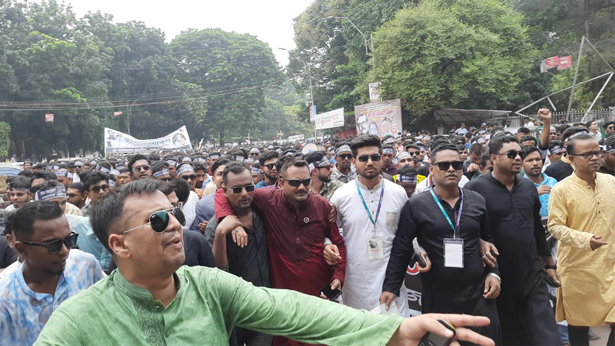 সরেজমিনে দেখা গেছে, বেলা সাড়ে ১১টায় ছাত্রলীগের রংপুর মহানগরের সাবেক সাংগঠনিক সম্পাদক শাহজাহানুর ইসলাম সৌরভের নেতৃত্বে হাজারো নেতাকর্মী নিয়ে রাজধানীর টিএসসি গেট দিয়ে সোহরাওয়ার্দী উদ্যানে প্রবেশ করেন।