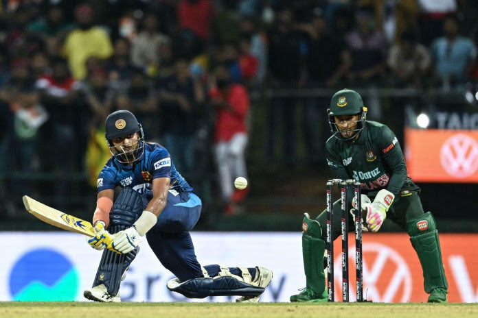 এদিন মামুলি পুঁজিতে দলীয় ১৩ ও ১৫ রানে উইকেট নিয়ে ম্যাচে উত্তেজনা ফেরান পেসার তাসকিন আহেমেদ ও শরিফুল ইসলাম। অল্পতে সাজঘরে ফেরেন দুই লঙ্কান ওপেনার দিমুথ করুনারত্নে (১) ও পাথুম নিশাঙ্কা (১৪)। আর দলীয় ৪৩ রানে শ্রীলঙ্কার অভিজ্ঞ ব্যাটার কুশল মেন্ডিসকে সাজঘরে ফিরিয়ে ম্যাচ জমিয়ে তোলেন টাইগার অধিনায়ক সাকিব আল হাসান। কিন্তু চতুর্থ উইকেটে সাদিরা সামারাবিক্রমা ও চারিথ আসালাঙ্কা ৭৮ রানের জুটি গড়ে টাইগারদের আশা ফিকে করে দেন। যদিও শেষ দিকে দ্রুত দুই উইকেট পতন হলে ম্যাচে চাঞ্চল্য ফেরে কিছুটা। ব্যক্তিগত ৫৪ রানে অফস্পিনার শেখ মেহেদী হাসানের বলে সামারাবিক্রমাকে স্টাম্পিং করেন মুশফিক। ৭ রানের ব্যবধানে ধনাঞ্জয়া ডি সিলভাকে সরাসরি বোল্ড করে দেন সাকিব। এতে ৩১ ওভার শেষে শ্রীলঙ্কার সংগ্রহ দাঁড়ায় ১২৭/৫-এ। কিন্তু শেষ পর্যন্ত ৬৬ বল বাকি রেখেই জয়ের সঙ্গে ম্যাচের ২ পয়েন্ট কুড়ায় লঙ্কানরা।
