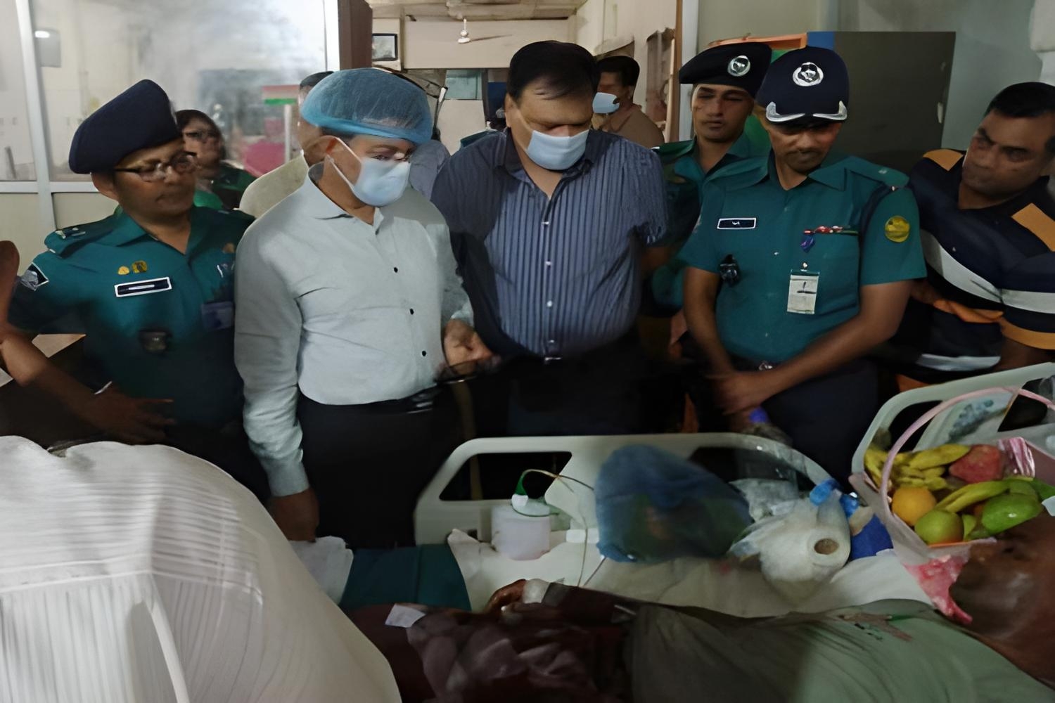 তাদের সাথে কথা বলেন, পরে রাত পৌনে এগারোটার দিকে চলে যান। ঢামেক পুলিশ ফাড়ির ইনচার্জ পরিদর্শক মো. বাচ্চু মিয়া বলেন, বর্তমানে আমাদের পুলিশ সদস্য তিনজন ঢামেকে চিকিৎসাধীন রয়েছেন।