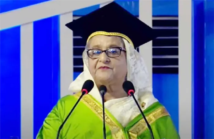 ঢাকা বিশ্ববিদ্যালয়কে ধন্যবাদ জানিয়ে প্রধানমন্ত্রীর বলেন, ২০১০ সালের ১৪ আগস্ট বিশ্ববিদ্যালয় জাতির পিতার প্রতি যে বহিষ্কারাদেশ ছিল, তা প্রত্যাহার করে নিয়েছিলেন। আজকে জাতির পিতাকে ডক্টর অব লজ ভূষিত করেছেন, আমি জানি না আপনাদেরকে কীভাবে ধন্যবাদ জানাবো। আমি কন্যা হিসেবে কৃতজ্ঞতা জানাই।