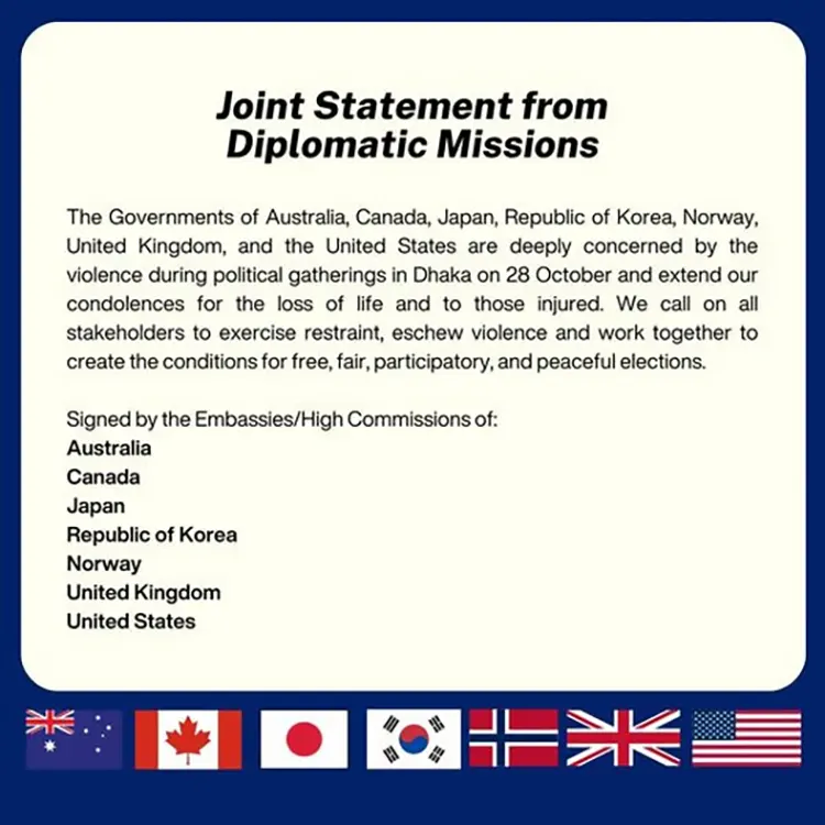 ঢাকার সহিংসতায় উদ্বেগ জানিয়ে ৭ দেশের যৌথ বিবৃতি