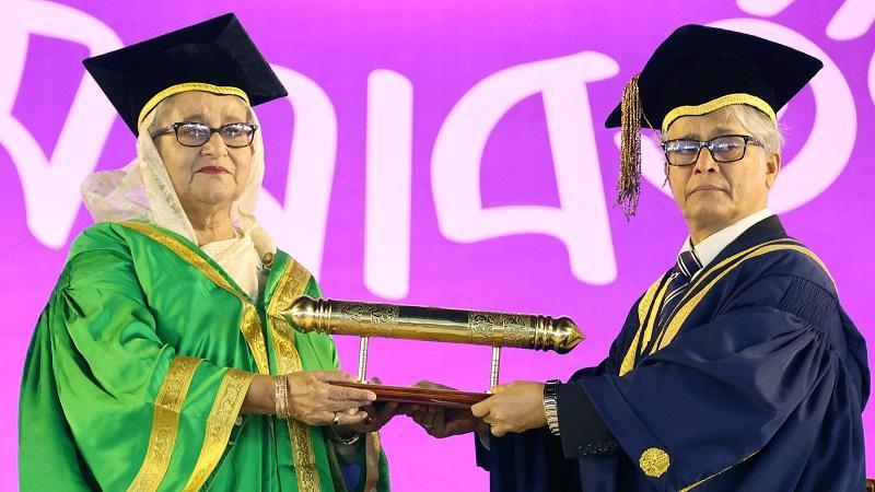বঙ্গবন্ধুর ‘ডক্টর অব লজ’ ডিগ্রি গ্রহণ করলেন কন্যা শেখ হাসিনা
