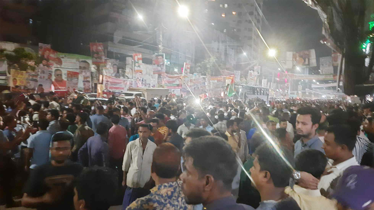 ‘কে বলেরে জিয়া নাই, জিয়া ছাড়া উপায় নাই। অ্যাকশন অ্যাকশন, ডাইরেক্ট অ্যাকশন। দাবি এক দফা, শেখ হাসিনার পদত্যাগ’— বিএনপি কর্মীদের এসব স্লোগানে মুখরিত দলটির নয়াপল্টনের কার্যালয়ের সামনে সড়ক। সড়কে হাজারো মানুষ। মানুষের ভিড়ে ফকিরাপুল থেকে কাকরাইলমুখী সড়কে যান চলাচল সীমিত আছে, তবে যানবাহন চলছে।