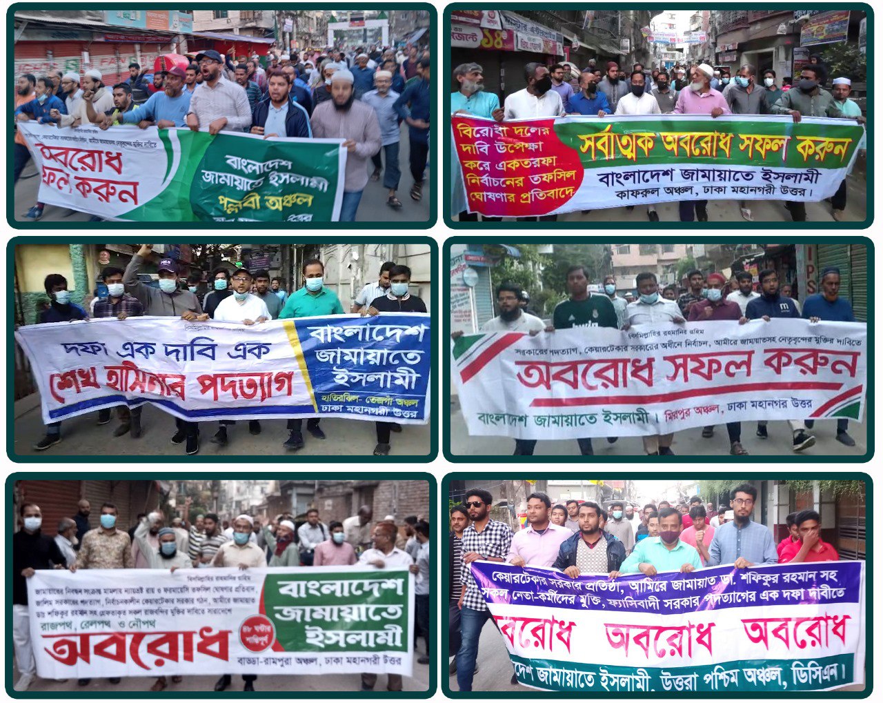 আওয়ামী লীগ সরকারের পদত্যাগ, নির্বাচনকালীন কেয়ারটেকার সরকার গঠন, আমীরে জামায়াত ডা: শফিকুর রহমানসহ সকল রাজবন্দি ও আলেম-ওলামার মুক্তি, মিথ্যা মামলা প্রত্যাহার এবং দ্রব্যমূল্য মানুষের ক্রয়ক্ষমতার মধ্যে নিয়ে আসার দাবিতে ৭ম দফায় ২৬ ও ২৭ নভেম্বর সড়কপথ, নৌপথ এবং রেলপথে জামায়াতের ডাকা টানা ৪৮ ঘন্টা অবরোধের সমর্থনে আজ ২য় দিনে রাজধানীর বিভিন্ন স্থানে বিক্ষোভ মিছিল ও সড়ক অবরোধ করে বাংলাদেশ জামায়াতে ইসলামী ঢাকা মহানগরী উত্তর শাখা।