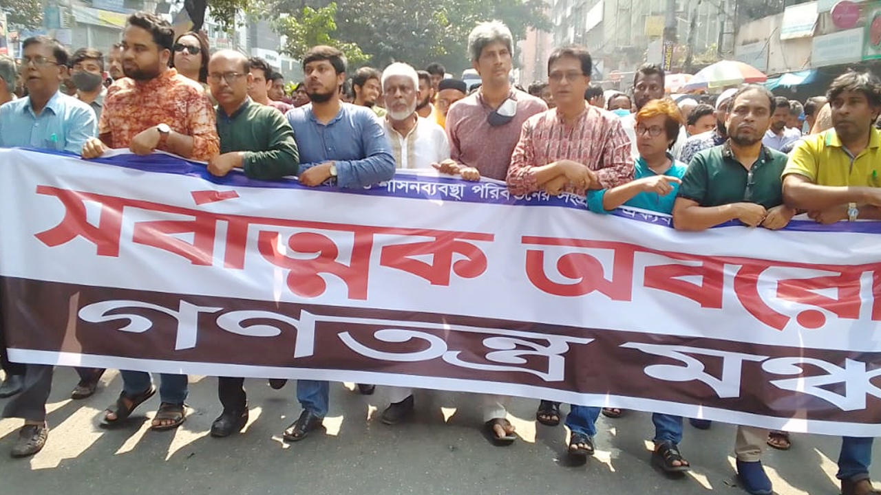 বুধবার (১ নভেম্বর) বেলা পৌনে ১২টায় রাজধানীর তোপখানা রোড থেকে গণতন্ত্র মঞ্চের মিছিলটি শুরু হয়ে বিজয়নগর, পল্টন মোড় এবং প্রেস ক্লাব ঘুরে সচিবালয়ের পাশে সংক্ষিপ্ত সমাবেশের মধ্য দিয়ে শেষ হয়।