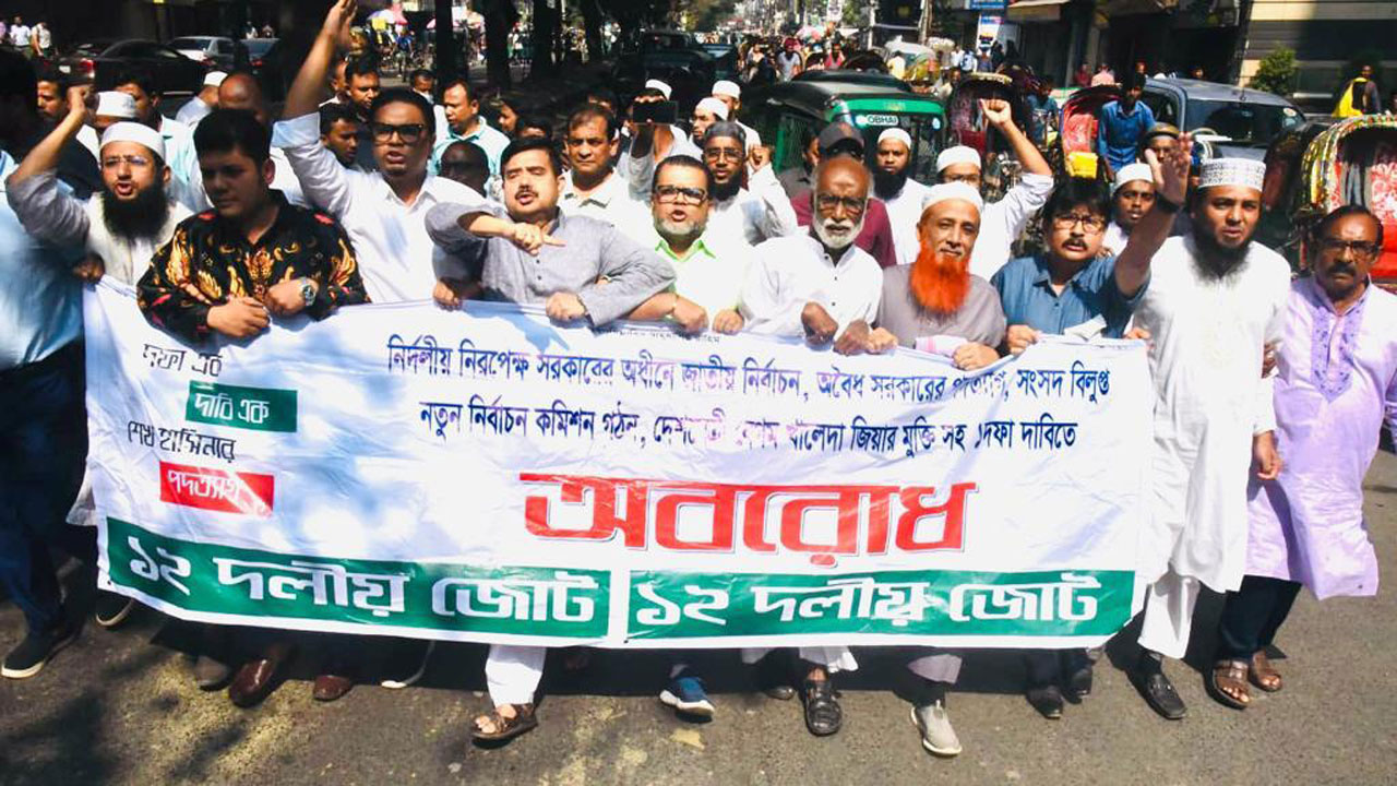সরকার ১৮ কোটি মানুষকে কারাগারে আটকে রাখতে পারবে না উল্লেখ করে ১২ দলীয় জোটের নেতারা আরও বলেন, জনগণই ভোটারবিহীন পাতানো ভোটের আয়োজন পন্ড করে দেবে। বিএনপির কেন্দ্রীয় ও তৃণমূল পর্যায়ে প্রায় সব নেতাকে গ্রেপ্তার করে আন্দোলনের দায়িত্ব জনগণের হাতে তুলে দিয়েছে। সরকারের বিএনপি দমন ও বাড়াবাড়ি দেশের মানুষকে ক্ষুব্ধ করে তুলেছে। নেতা বিহীন আন্দোলন বিনা পিকেটিং ও নেতৃত্ব ছাড়াই দেশের মানুষ স্বতঃস্ফূর্তভাবে এগিয়ে নিচ্ছে।