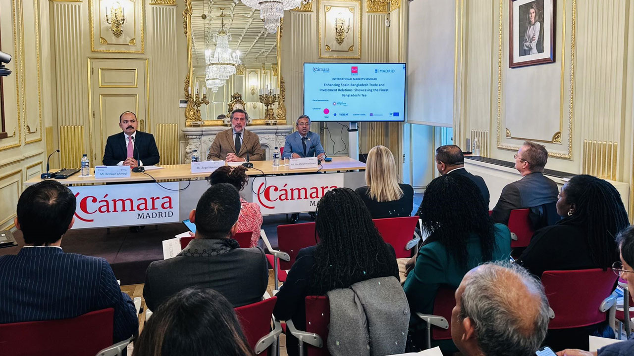 স্পেনে বাংলাদেশের প্রিমিয়াম কোয়ালিটি চায়ের ব্র্যান্ড জনপ্রিয় করতে এবং চায়ের বাজার সম্প্রসারণের লক্ষ্যে মাদ্রিদ চেম্বারে বাণিজ্য ও বিনিয়োগ বিষয়ক সেমিনার অনুষ্ঠিত হয়েছে।