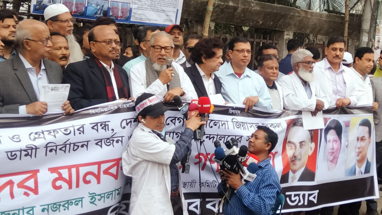 বুধবার দুপুরে জাতীয় প্রেসক্লাবের সামনে ভোট বর্জন, খালেদা জিয়াসহ নেতাকর্মীদের মুক্তির দাবিতে ড্যাব আয়োজিত মানববন্ধনে তিনি এ আহ্বান জানান। পরে প্রেসক্লাবের সামনে ‘ভোট বর্জন ও অসহযোগ আন্দোলনের’ পক্ষে লিফলেট বিতরণ করেন তিনি।