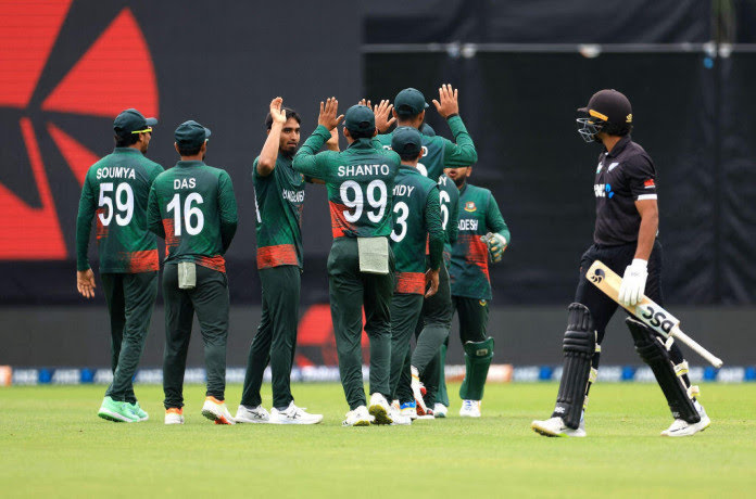 ইনিংসের প্রথম ওভারে টিম সেইফার্টকে আউট করেন শেখ মেহেদী। এরপর ইনিংসের পঞ্চম ওভারে তাকে আবার ফেরান অধিনায়ক নাজমুল হোসেন শান্ত। ১ রানে ৩ উইকেট হারানোর পর পাল্টা আক্রমণের চেষ্টা করেন ড্যারি মিচেল। ফিরেই সেই মিচেলকে বোল্ড করলেন মেহেদী। ২০ রানে ৪ উইকেট হারিয়ে ব্যাটিং বিপর্যয়ে পড়েছে নিউজিল্যান্ড।