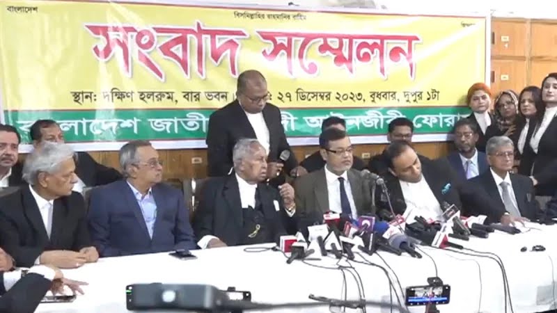 বুধবার (২৭ ডিসেম্বর) সুপ্রিম কোর্ট বার ভবনে এক সংবাদ সম্মেলনে এ ঘোষণা দেন জাতীয়তাবাদী আইনজীবী ফোরামের মহাসচিব ব্যারিস্টার কায়সার কামাল।