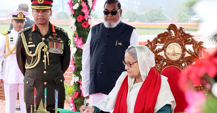 শুক্রবার (১২ জানুয়ারি) বেলা ১১টায় প্রধানমন্ত্রী শেখ হাসিনার নেতৃত্বে সাভারের জাতীয় স্মৃতিসৌধে শ্রদ্ধা নিবেদন করে নতুন মন্ত্রিসভা। এরপর জাতীয় স্মৃতিসৌধ প্রাঙ্গণে রাখা দর্শনার্থী বইতে সই করার সময় শেখ হাসিনা এই অঙ্গীকার করেন।