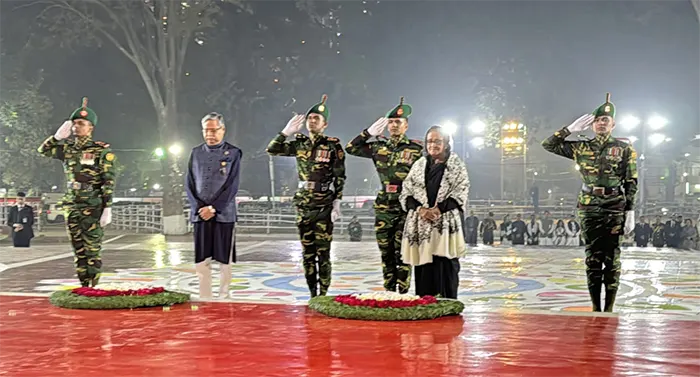 এর আগে রাত ১১টা ৫১ মিনিটে প্রধানমন্ত্রী শহীদ মিনারে এসে পৌঁছলে তাকে অভ্যর্থনা জানান ঢাকা বিশ্ববিদ্যালয়ের উপাচার্য অধ্যাপক ড. এ এস এম মাকসুদ কামাল।