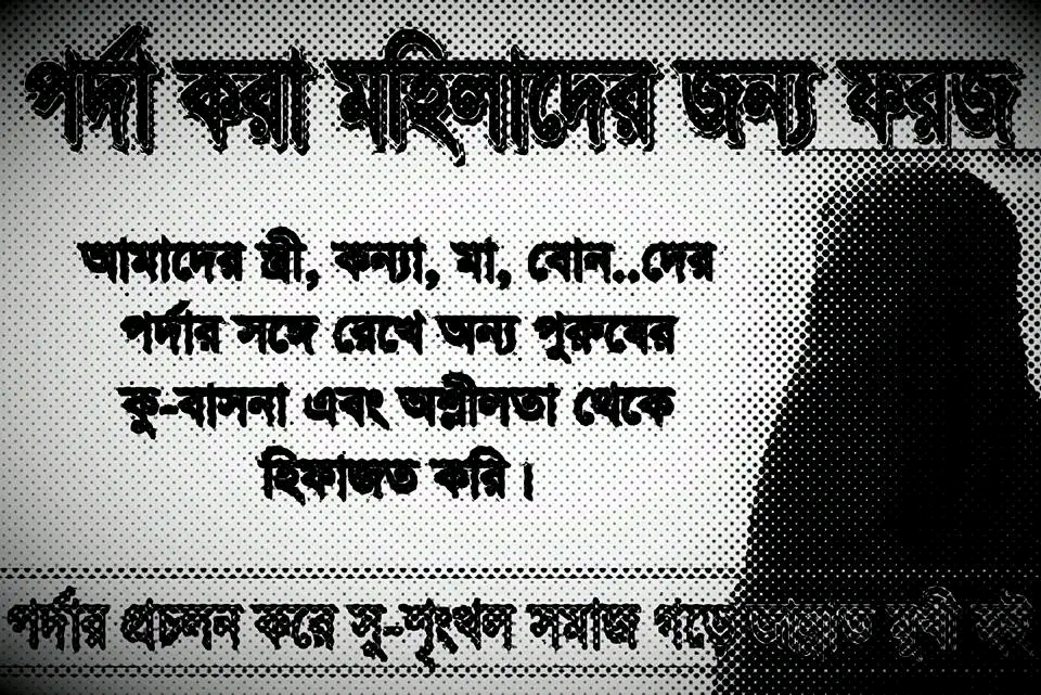 আর চেহারা ও পোশাক-আশাকের পর্দা রক্ষা প্রচলিত বোরকা বা এজাতীয় কাপড় দ্বারা অর্জিত হয়ে থাকে।