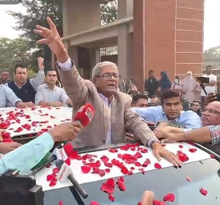 দীর্ঘ সাড়ে তিন মাস কারাবন্দির পর আজ বিকালে মুক্তি পেয়েছেন বিএনপি মহাসচিব মির্জা ফখরুল ইসলাম আলমগীর ও স্থায়ী কমিটির সদস্য আমির খসরু মাহমুদ চৌধুরী। মুক্তি পেয়েই কারাফটকের সামনে মির্জা ফখরুল বলেছেন, বাংলাদেশের জনগণ সব সময় গণতন্ত্রের জন্য, ভোটের অধিকারের জন্য, ভাতের অধিকারের জন্য সংগ্রাম করেছে, লড়াই করেছে। ইনআশাল্লাহ এই সংগ্রামে তারা জয়ী হবে।