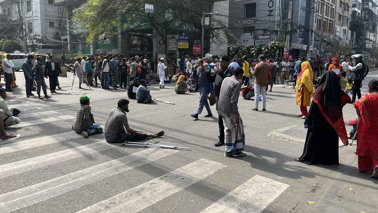 মুস্তাফিজুর আরও রহমান বলেন, ‘তাদের সড়ক অবরোধের ফলে এ এলাকায় বেশ যানজট লেগে গেছে। আমরা তাদের সঙ্গে কথা বলছি। সিনিয়ররা তাদের সঙ্গে কথা বলছেন। আমরা তাদের সড়ক থেকে সরিয়ে দেওয়ার চেষ্টা করছি। আশা করছি দ্রুতই পরিবেশ স্বাভাবিক হবে।’