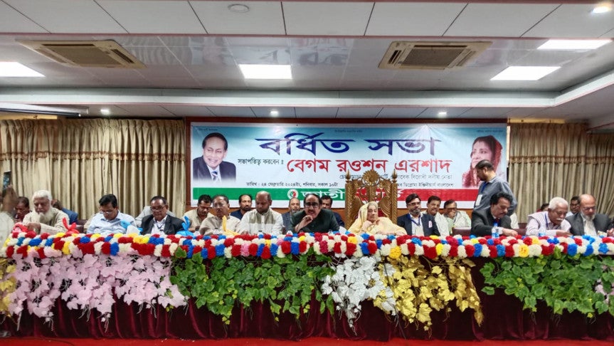 আজ শনিবার (২৪ ফেব্রুয়ারি) রাজধানীর ইঞ্জিনিয়ার্স ইস্টিটিউশন মিলনায়তনে দলের এক বর্ধিতসভায় সভাপতির বক্তব্যে রওশন এরশাদ এসব কথা বলেন। সভায় দলের বিপুলসংখ্যক নেতাকর্মী উপস্থিত ছিলেন। এতে ৩৯টি জেলার সভাপতি ও সাধারণ সম্পাদক এবং বিভিন্ন জেলার প্রতিনিধিরা উপস্থিত ছিলেন বলে আয়োজকরা জানান।
