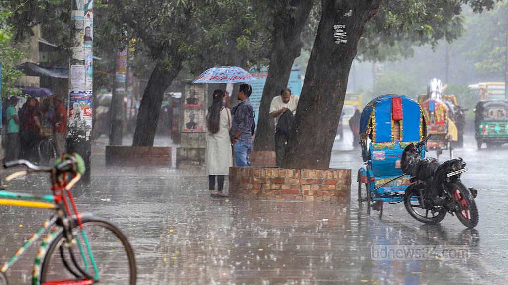 দুপুর আড়াইটার দিকে রাজধানীর আকাশে মেঘ জমতে শুরু করে। পৌনে ৩টার দিকে শুরু হয় ঝুম বৃষ্টি। সঙ্গে ঝড়ো ও দমকা হাওয়া।
