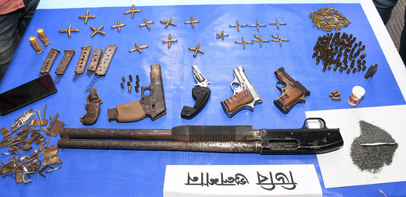 আসামিদের দেওয়া তথ্যের বরাত দিয়ে পুলিশ জানায়, শনিবার বিকেল সাড়ে ৪টার দিকে খাপাড়ায় একটি পারিবারিক কবরস্থানের বিপরীতে লোহার গেটের ভেতর পাকা বাথরুমের তালা ভেঙ্গে তল্লাশি করে গোয়েন্তা পুলিশ। এ সময় সেখান থেকে ২টি বিদেশি পিস্তল, ১টি বিদেশি রিভলভার, ১টি বিদেশি শর্টগান, ১টি পুরাতন রিভলবার যাহার যন্ত্রাংশ খোলা ও ভাঙ্গা, ১টি ৯এমএম পিস্তল- যা পুরাতন ও ভাঙ্গা, ৭৫ রাউন্ড গুলি, ২ রাউন্ড শটগানের কার্তুজ, ২১০ রাউন্ড গুলির খোসা, ৫টি পুরাতন ম্যাগাজিন, ৪০গ্রাম বারুদ সদৃশ পদার্থ, ৬০পিস বিভিন্ন অস্ত্রের ক্ষুদ্র যন্ত্রাংশ উদ্ধার করা হয়। আসামিদের বিরুদ্ধে মামলা করা হয়েছে।
