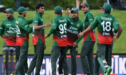 বাংলাদেশের পক্ষে তিন উইকেট নেন তাসকিন।মুস্তাফিজ ও মিরাজ পান দুটি করে উইকেট।