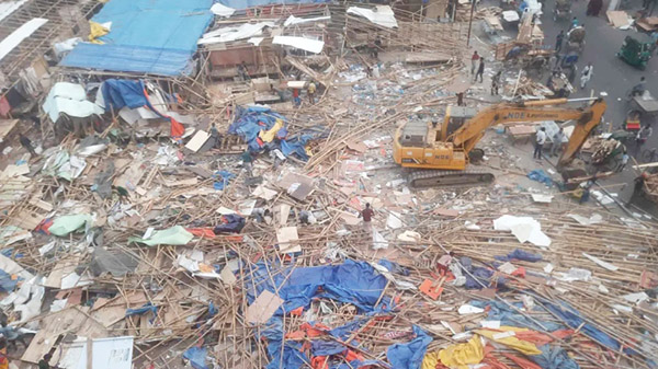 গত বছরের ৪ এপ্রিল ভয়াবহ অগ্নিকাণ্ডে ভস্মীভূত হয়ে যায় পাইকারি কাপড়ের মার্কেট বঙ্গবাজার। এরপর সেখানে অস্থায়ীভাবে বসে দোকান। এবার ঈদে খুব একটা বেচাবিক্রি না হলেও পোশাকের পসরা সাজিয়ে বসেছিলেন দোকানিরা। আজ তা ভেঙে দেওয়া হলো।