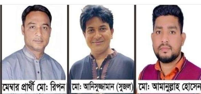 রওনাকুল ইসলাম রিপন, আনিসুজ্জামান সুজল, আমানুল্লাহ হোসেনকে ঘিরে নির্বাচনী প্রচারনার আজ শেষ দিন। কাল সেই কাঙ্ক্ষিত ভোট। রওনাকুল ইসলাম রিপন লড়ছেন টিউবওয়েল প্রতিক নিয়ে, আনিসুজ্জামান সুজল লড়ছেন ফুটবল প্রতিক নিয়ে এবং আমানুল্লাহ হোসেন লড়ছেন তালা প্রতিক নিয়ে। প্রতিটি প্রার্থীর মধ্যেই টানটান উত্তেজনা এবং উক্ত এলাকার জনগণের মধ্যে সমর্থিত প্রার্থীকে ঘিরে আশার শেষ নেই। প্রচার, প্রচারনায় কোনো প্রার্থীই পিছিয়ে নেই সর্বোচ্চ চেষ্টা দিয়েই