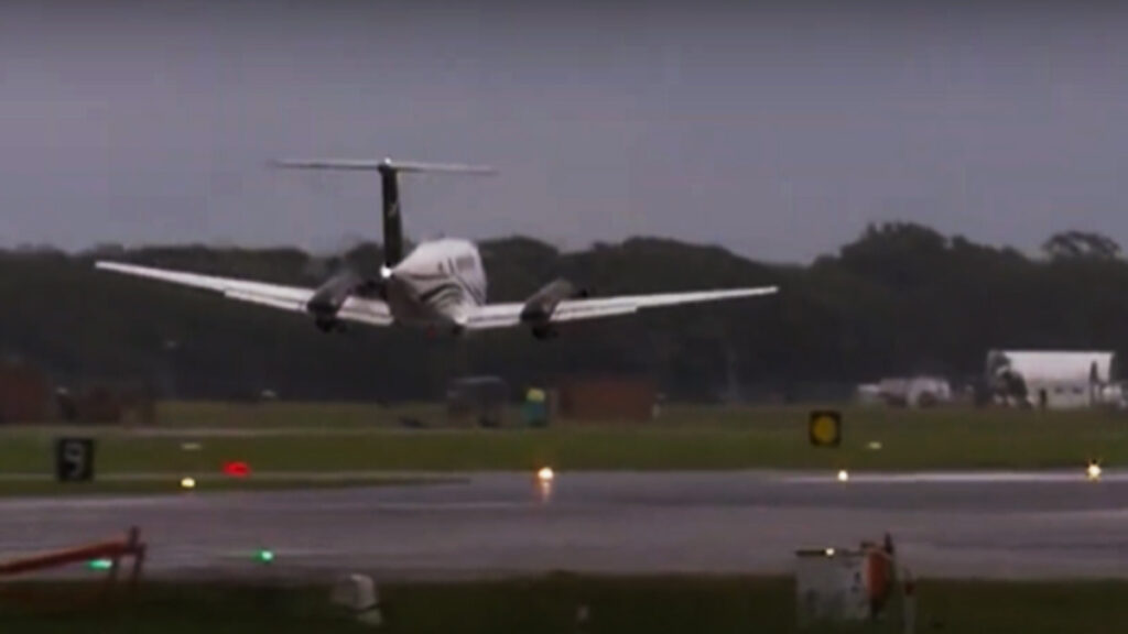 বিমানবন্দর কর্তৃপক্ষের বরাত দিয়ে ব্রিটিশ সংবাদমাধ্যমটি জানায়, সোমবার অবতরণের কিছু আগে যান্ত্রিক ত্রুটি দেখা দেয় বিমানটিতে। বিচক্র্যাফট সুপার কিং এয়ারক্র্যাফট নামক বিমানটির ল্যান্ডিং গিয়ার আটকে যায়। ফলে চাকা ছাড়াই অবতরণ করতে বাধ্য হয় বিমানটি।