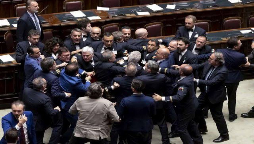 পলিটিকো লিখেছে, সংস্কার প্রস্তাবের বিরোধিতাকারী ফাইভ স্টার দলের এমপি লিওনার্দো ডনো আক্রমণাত্মকভাবে মন্ত্রী রবার্তো কালডেরলির দিকে ইতালির পতাকা নিয়ে যান। সে সময় দুজন কেরানি ডনোকে ঠেকাতে যান। সঙ্গে সঙ্গে প্রধানমন্ত্রী মেলোনির জোটের আরও কয়েকজন এমপিও সেখানে হাজির হন। পরে ডনো পড়ে যান। ডনোকে হুইল চেয়ারে করে সরিয়ে নেন পার্লামেন্টের চিকিৎসাকর্মীরা।