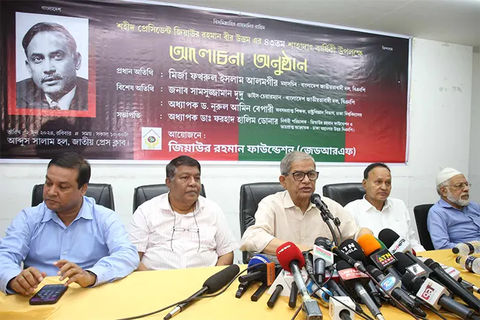 রোববার দুপুরে ঢাকায় জাতীয় প্রেসক্লাবে জিয়াউর রহমান ফাউন্ডেশনের (জেডআরএফ) উদ্যোগে ‘বিএনপির প্রতিষ্ঠাতা ও সাবেক প্রেসিডেন্ট জিয়াউর রহমানের ৪৩তম শাহাদাৎ বার্ষিকী উপলক্ষ্যে’ আয়োজিত এক আলোচনা সভায় তিনি এসব কথা বলেন।